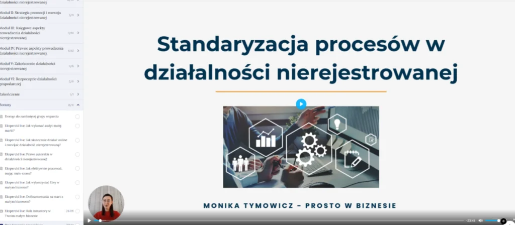 W ramach kursu przygotowałam wideo-lekcję o tym, jak uporządkować swoje działania i stworzyć pierwsze procesy – nawet jeśli dopiero zaczynasz i działasz po godzinach.