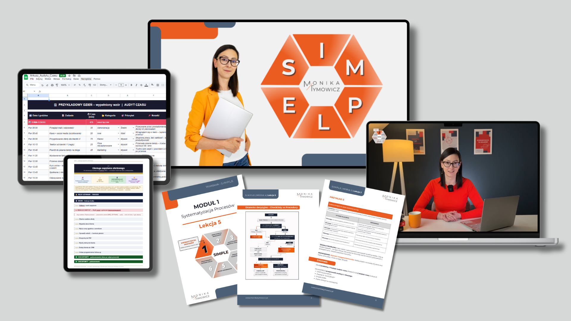 Proces S.I.M.P.L.E. to 6-modułowy kurs online, który przeprowadzi Cię krok po kroku od chaosu do uporządkowanego, działającego biznesu.
