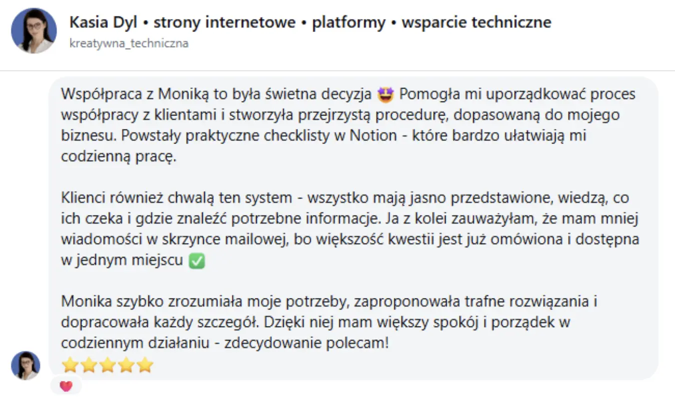 Nie uczę „jak być zorganizowaną”. Uczę „jak zbudować system, który działa – niezależnie od Twojego charakteru”.